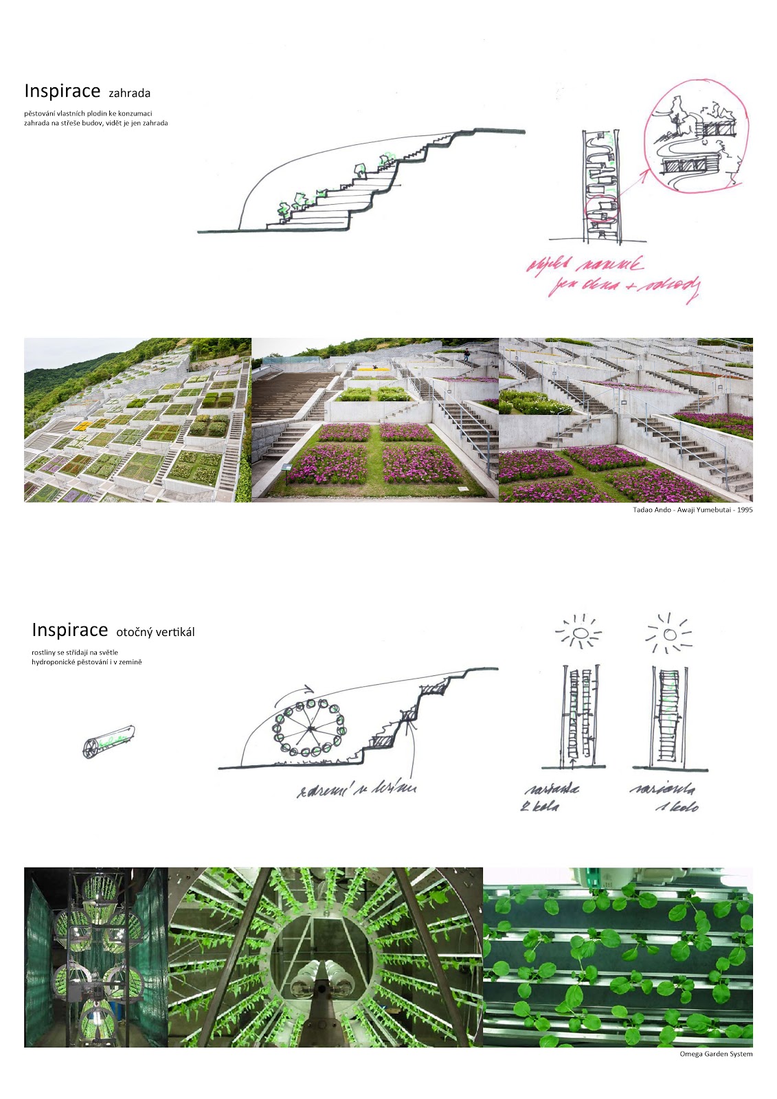 Jedenác kol zastupuje koloběh života náhodně vybraných rostlin a živočichů. Jejich obvody se liší, tak jako se liší déka života každého druhu. V nejvyšších slunečných místech jsou navrženy rostliny, nejníže pak kola života lidí. Tedy čím složitější je pozorovaný objekt, tím hlouběji se člověk noří do svahu i své mysli. Každé kolo má statickou část, kterou je plošina s pozorovatelnami, procházející skrz středy kružnic. Vnější část s cílem pozorování se otáčí a umožňuje tak návštěvníkovi variabilně zvolit sůj program pobytu. Někdo bude preferovat pouze vizuální dojem a vnímat bude krásu listů nebo pestrost křídel. Jiný návštěvník může být náročnější a těmi samými místy si projde s cílem objevovat, porovnávat a hodnotit.